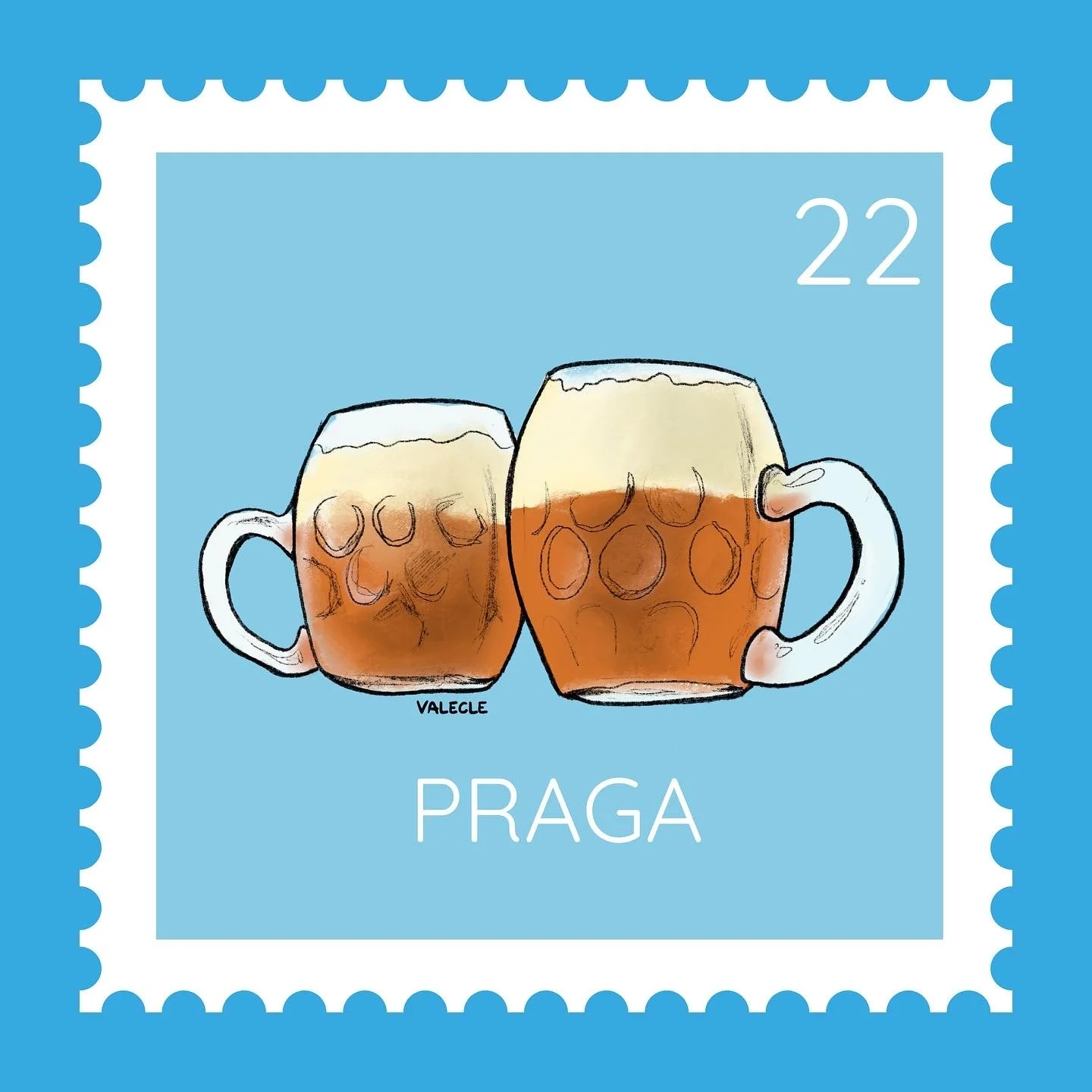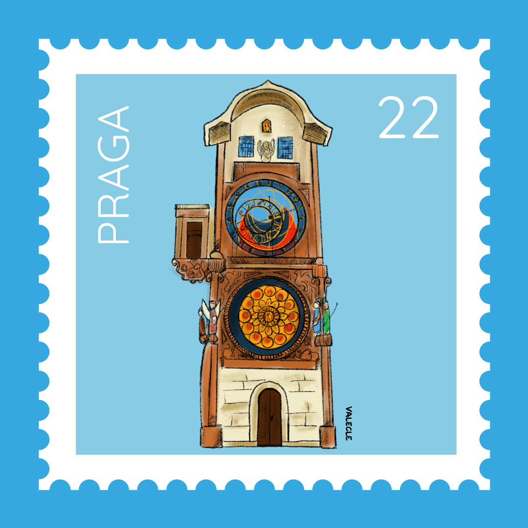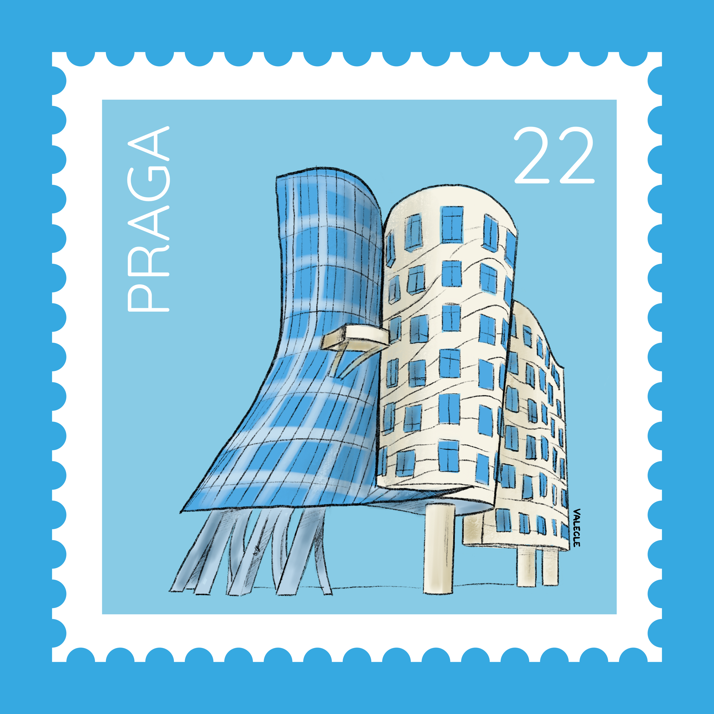 Explorando la ciudad de Praga con estas ilustraciones del distintivo edificio Danzante y el mágico reloj astronómico.