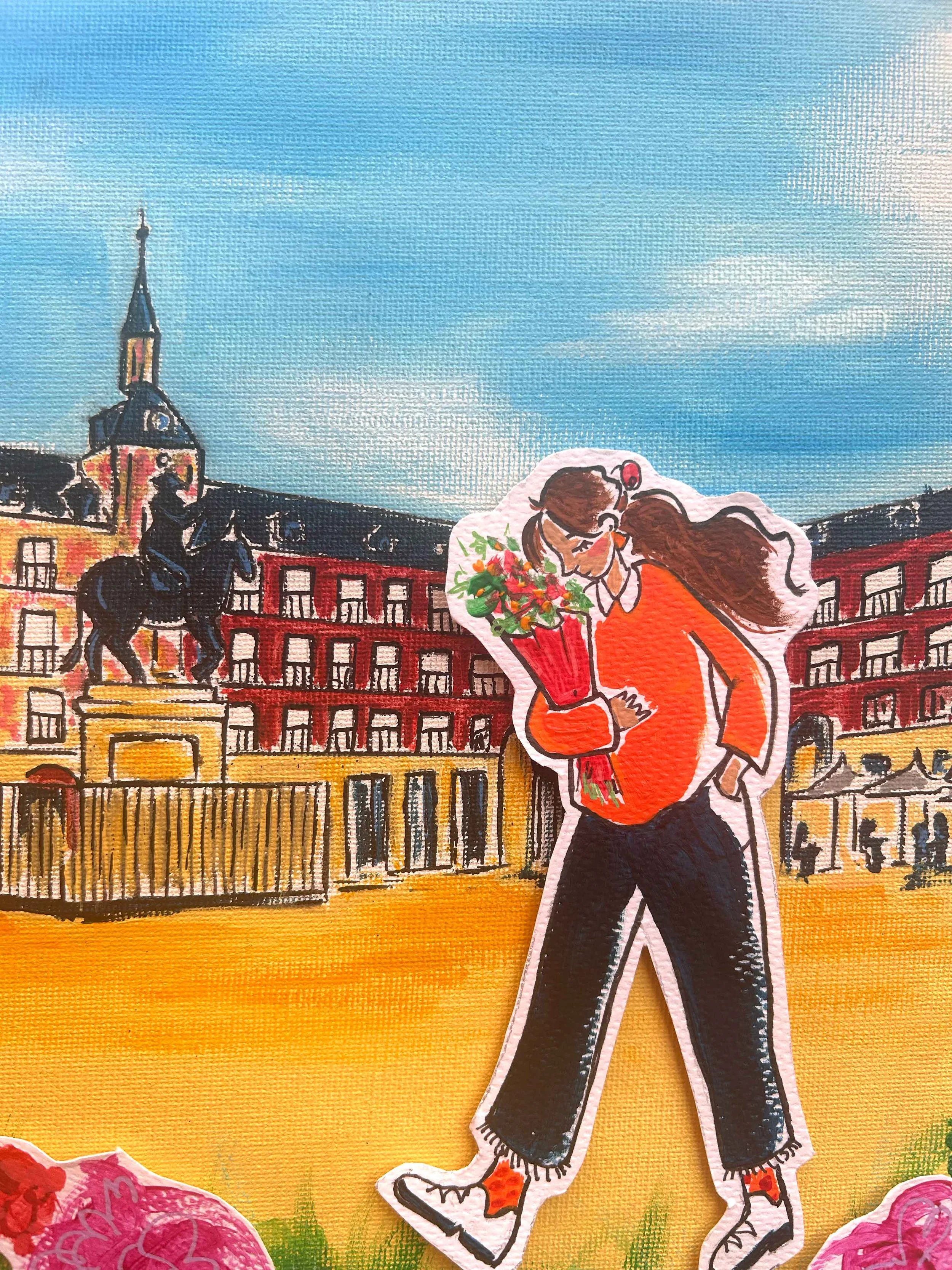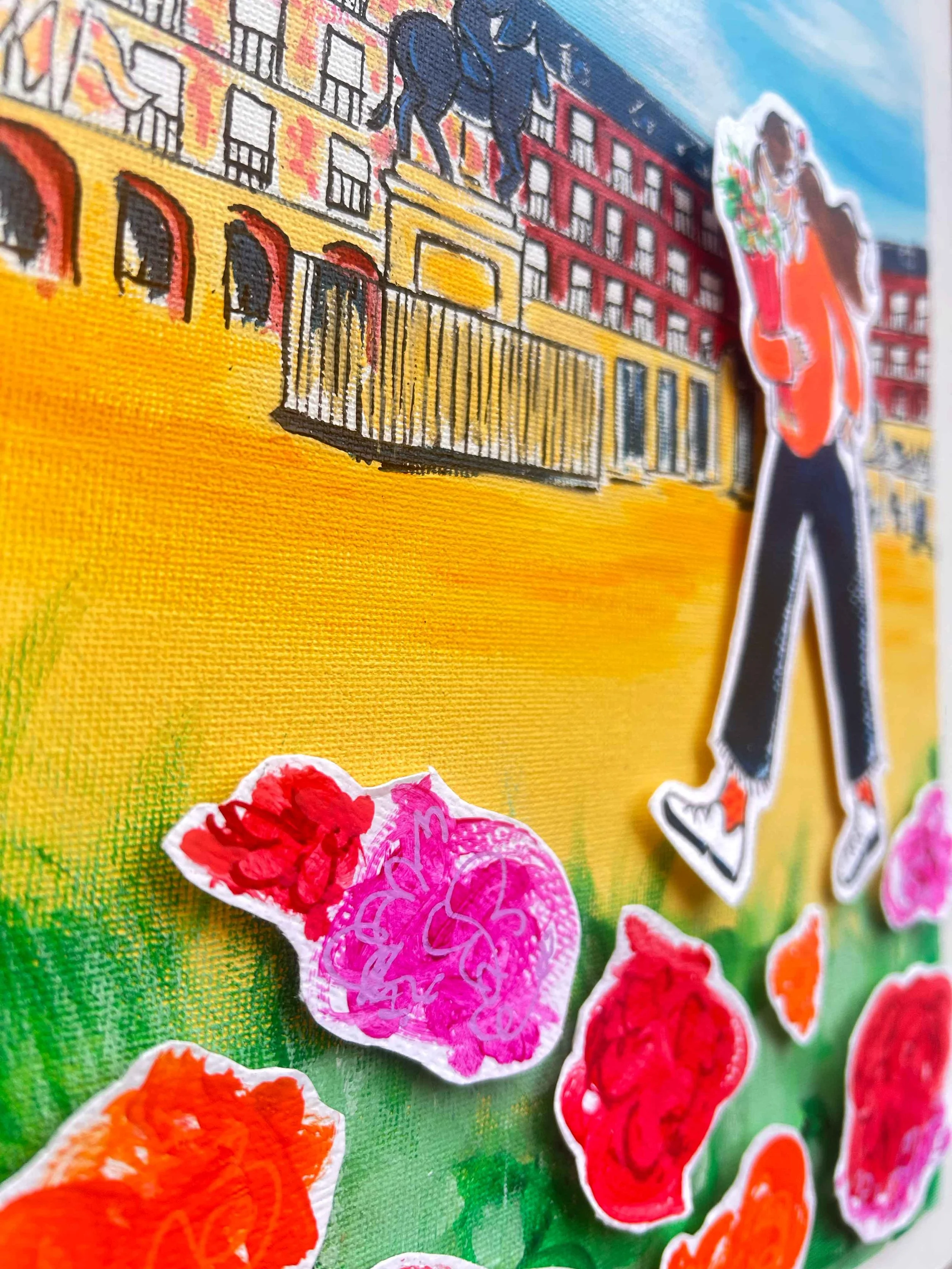 Madrid en relieve Pintura acrílica sobre lienzo en madera con detalles en relieve. Inspirada en la Plaza Mayor de Madrid. ¡Lo quiero!